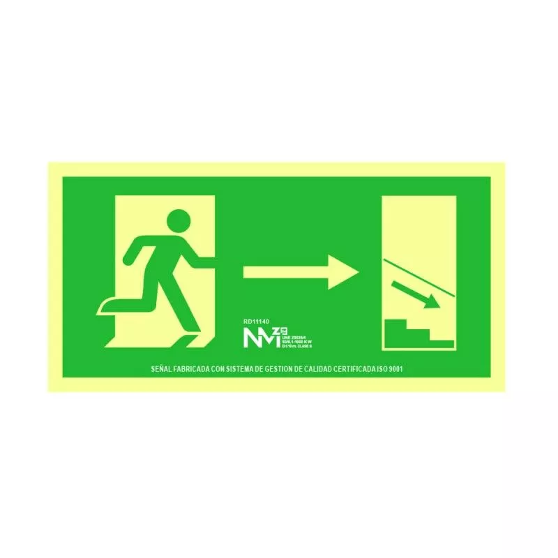 SEÑAL EVACUACIÓN ESCALERA ABAJO DERECHA PVC 0,7mm CLASE B 32x16cm B11140 NORMALUZ