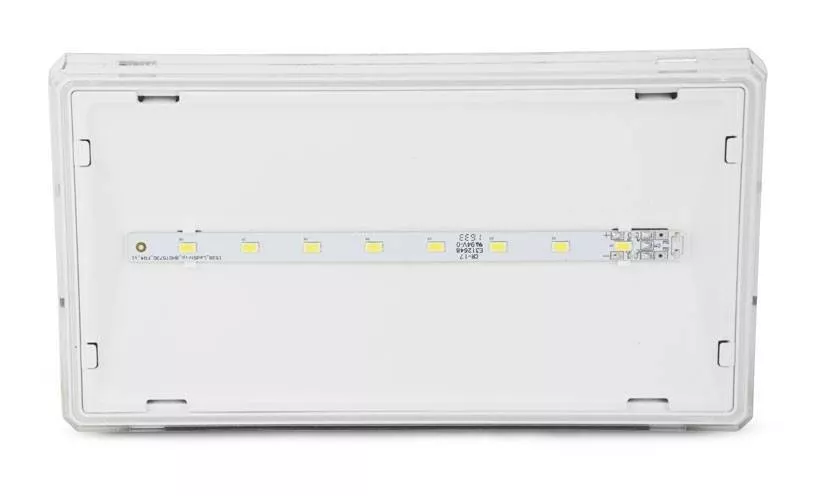 Luz de emergencia LED EXIT 70 lumens IP42 para instalación interior, de superficie o semi-empotrada (adquiriendo las grapas). Fabricada en policarbonato blanco y con difusor transparente u opal. Esta luminaria nos indica a través de su diodo LED si está conectada a la tensión y la carga acumulada de la batería. Tiene una autonomía de 1 hora . La luz no es permanente, solo se enciende en caso de corte lumínico. Personalizala con pictogramas y la banderola. **DISPONIBLE CON DIFUSOR TRANSPARENTE Y OPAL** 230V IP42 70 lm