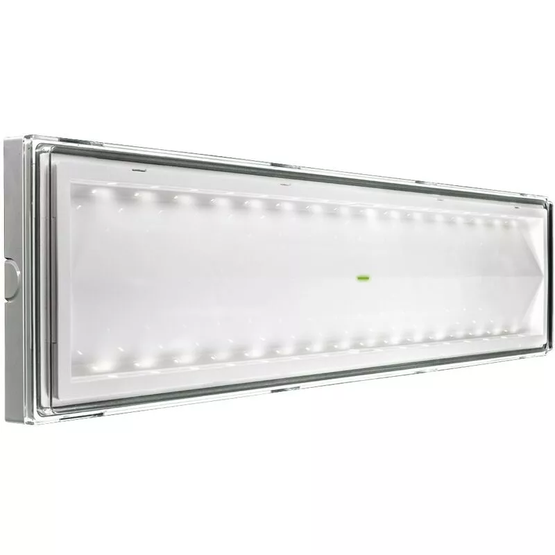 Lámpara de emergencia Beghelli Ticinque LED TR con las siguientes características: Fuente de alimentación de 230 Vac ± 10% Frecuencia: 50÷60 Hz Absorción: 4W en AC Grado de protección: IP42 Potencia equivalente: 18W Versión: SA/SE Autonomía: 8 horas Tiempo de recarga: 12 horas Batería: LiFe 9,6V 1,5 Ah Flujo SE: 260 lúmenes Flujo SA: 180 lúmenes Otras características técnicas: Dimensiones en mm: LxBxH - 608x114x53 Distancia de visibilidad (DV): 20m Aplicaciones: industrial, terciario, centros comerciales Instalaciones: pared, techo Cuerpo Policarbonato blanco RAL 9003 Óptica simétrica, blanca Pantalla: policarbonato transparente Peso: 1,8 kg Conformidad: EN 60598-1, EN 60598-2-22, UNI EN 1838, UNI 11222, EN 62034 Tipo de : Lámparas Instalación : De Pared/De Empotrar Led Integrada : USTED