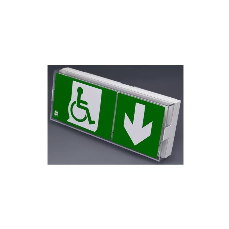 Se vende sin señalización. El plastico. Tipo de iluminación: No permanente. Luz nocturna: 1 LED de 0,5W. Lámpara de emergencia: 2 LEDs de 1W. Clase de protección: 2. Voltaje/ Frecuencia: 230V 50-60Hz. Prueba: Autocomprobable - SATI. Flujo luminoso: 45-60 LM. Autonomía: 1H30. Acuerdo NF/EN: T 9038. Conexión: 7 agujeros ciegos. Resistencia al fuego: 850°C. Consumo: 0,91VA. Montaje: Pared. Pictograma: Adhesivo. Grado de protección: IP65 IK09. Dimensiones: 255x100x75mm. Peso: 1,0Kg.