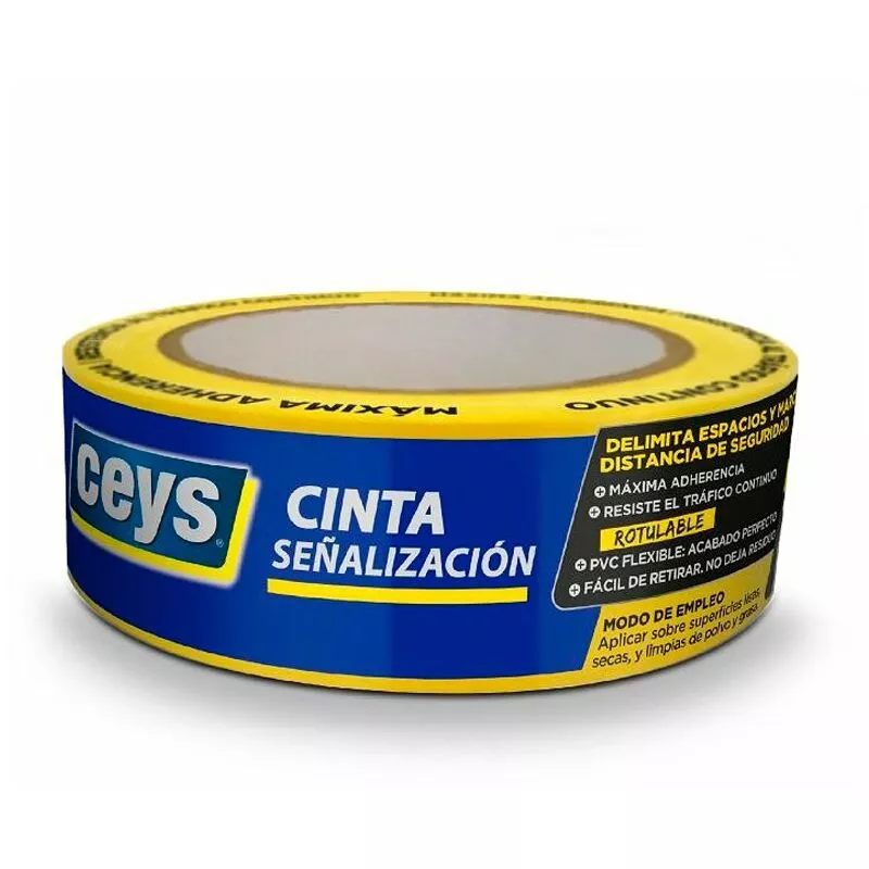Cinta adhesiva de señalización amarilla rotulable 50mmx33m Ceys
