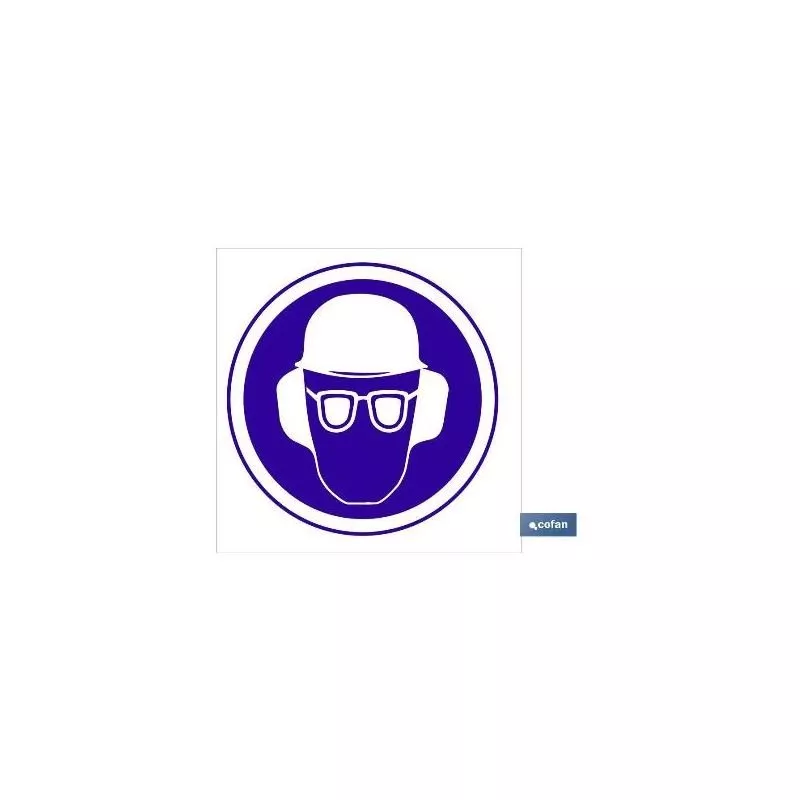 Cofan - PLIMPO señal poliestireno 105x105mm obligatorio casco, gafas y orejeras