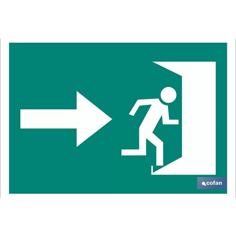 Señal de Evacuación de "salida de emergencia" puerta derecha. Señal en Pictograma. Tamaño y material a elegir (luminiscente y adhesivo)