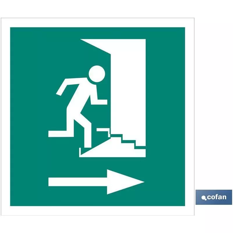 Señal "salida de emergencia" luminiscente puerta hacia la derecha en varias medidas