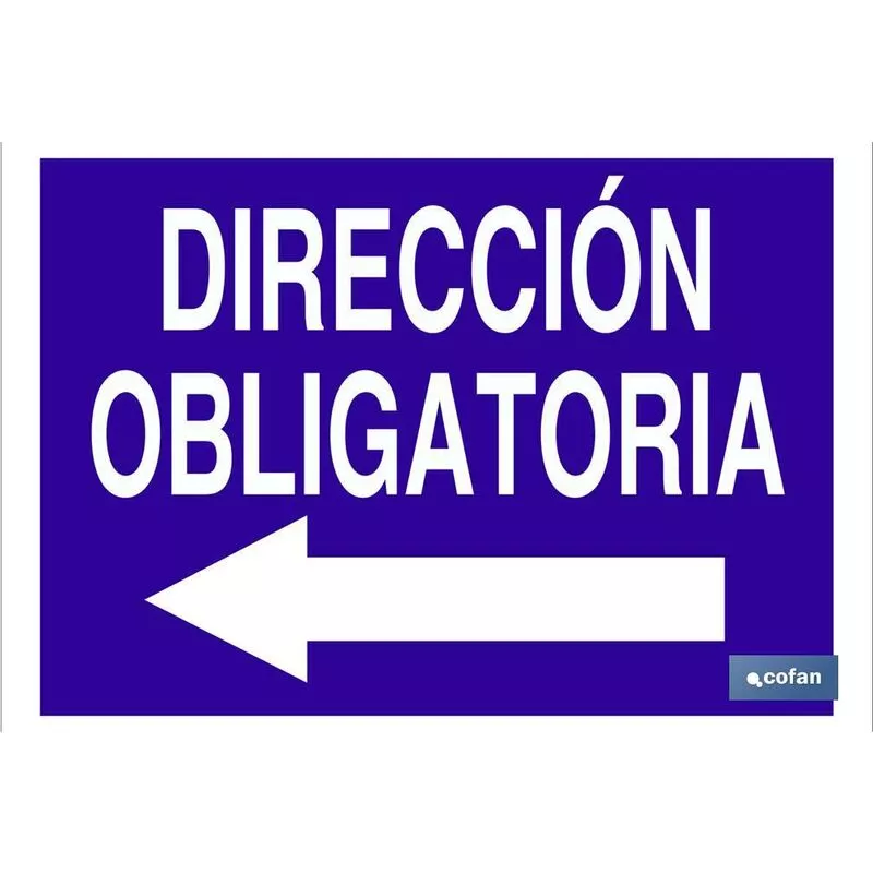 Señal de obligación con texto Dirección obligatoria.