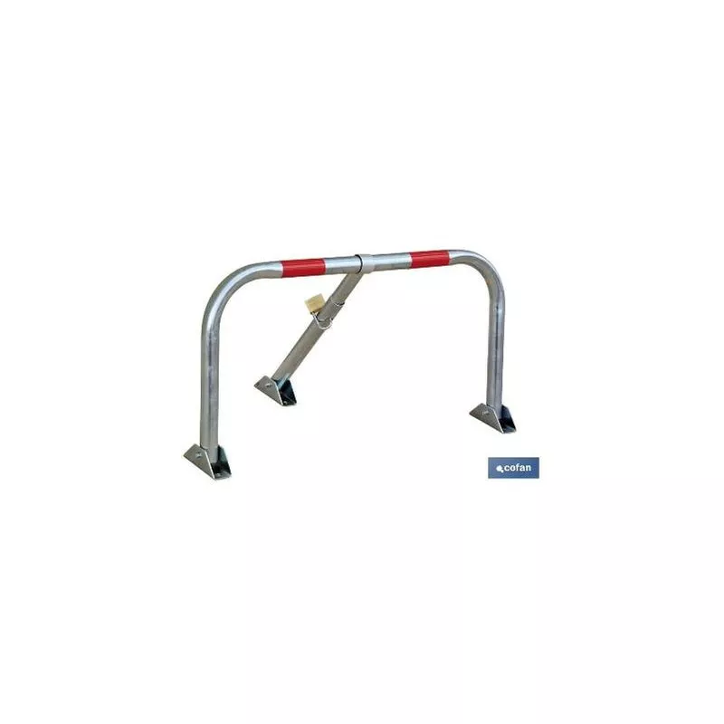Conjunto bloqueo de parking con candado. Evita la ocupación de plaza de aparcamiento cuando el vehículo no se encuentra estacionado. Fabricado en acero galvanizado con bandas rojas luminiscentes para una perfecta visualización. Barrera levantada: 860 x 300 x 469 mmBarrera bajada: 860 x 710 x 45 mmTubo de Acero Ø 35 mm