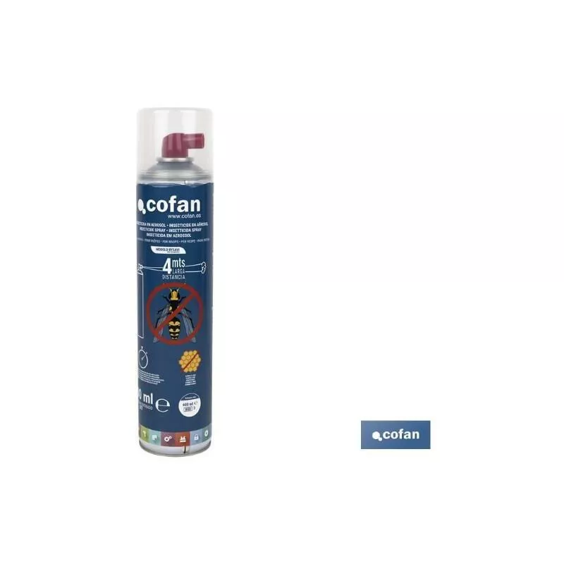 Insecticida en aerosol de alta concentración, muy eficaz, que controla de manera inmediata las avispas y sus nidos. Se aplica mediante una cánula que alcanza los 4 metros, por lo que no es necesario acercarse a los insectos o sus nidos. La formulación ha sido desarrollada para actuar contra avispas, avispones y, especialmente, sus nidos.Formato del bote en spray con 600 ml.