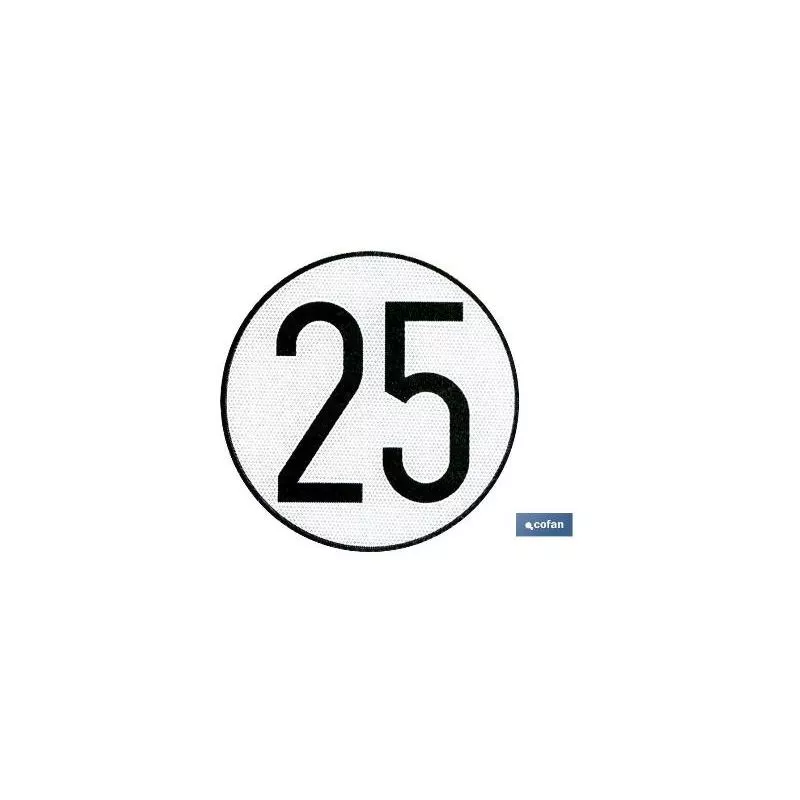 Placa V-4 de Velocidad máxima permitida 25 km/h.para vehículos especiales. 200mmø