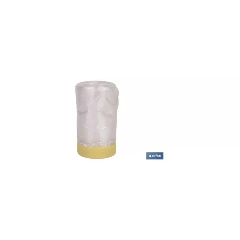 Rollo cinta crepe + plástico 80° con medidas de 35, 60, 90, 120, 180, 260 y 360 cm.