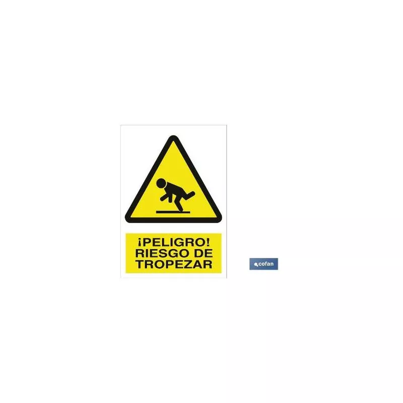 Señal de advertencia de peligro riesgo de tropezar. Tamaño y material a elegir.