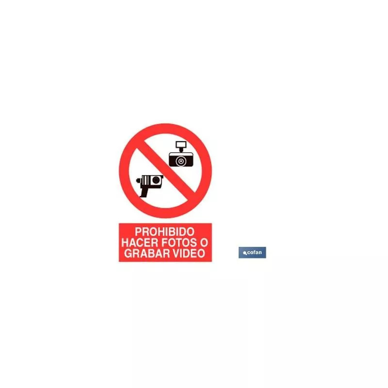 Señal Pictograma y Texto prohibido fotos y video en varias medidas y materiales.