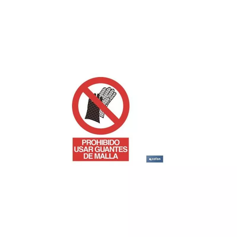Señal Pictograma y Texto prohibido guantes de malla en varias medidas y materiales.