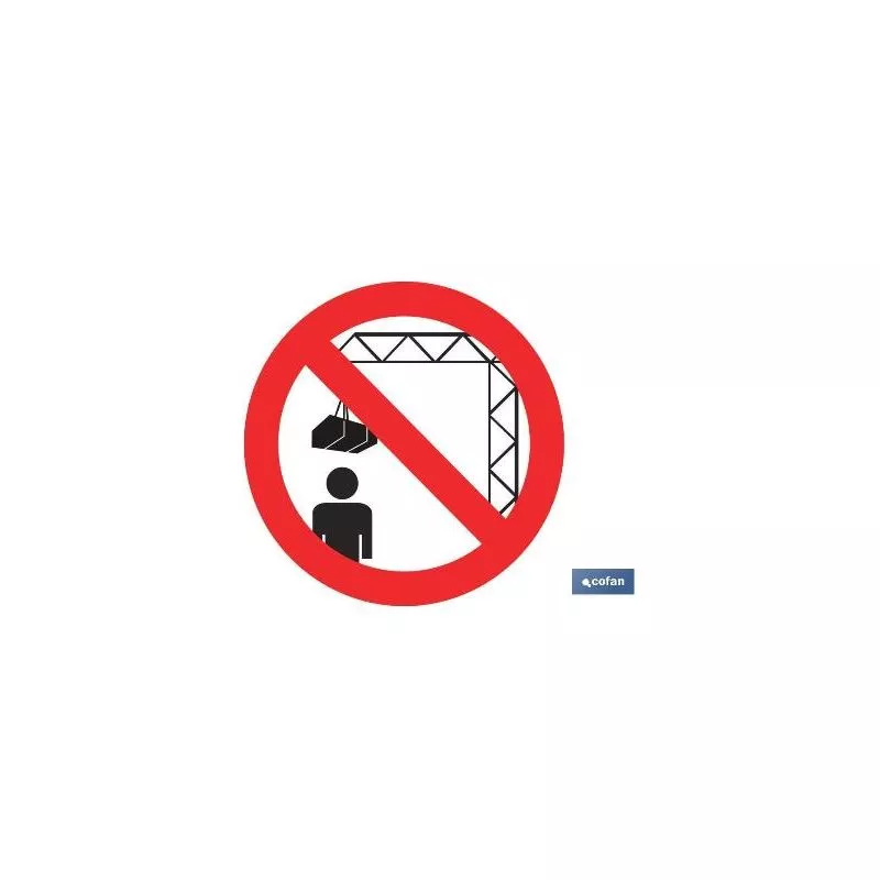 Señal Pictograma prohibido situarse debajo de la carga en varias medidas y materiales.