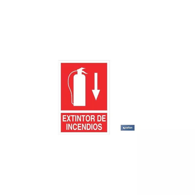 Señal de socorro Extintor de incendios abajo. Tamaño a elegir. Pictograma + Texto. Tamaño y material a elegir (luminiscente y adhesivo).