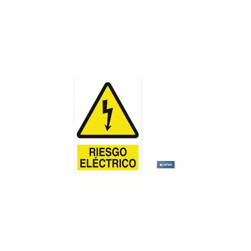 Señales de RIESGO ELECTRICO en poliestireno (plástico) de 1,5mm y Adhesivas en varios tamaños.