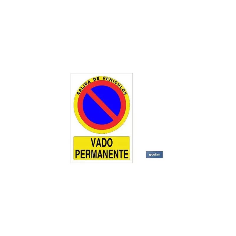 Señal vado permanente en adhesiva y poliestireno con varias medidas.