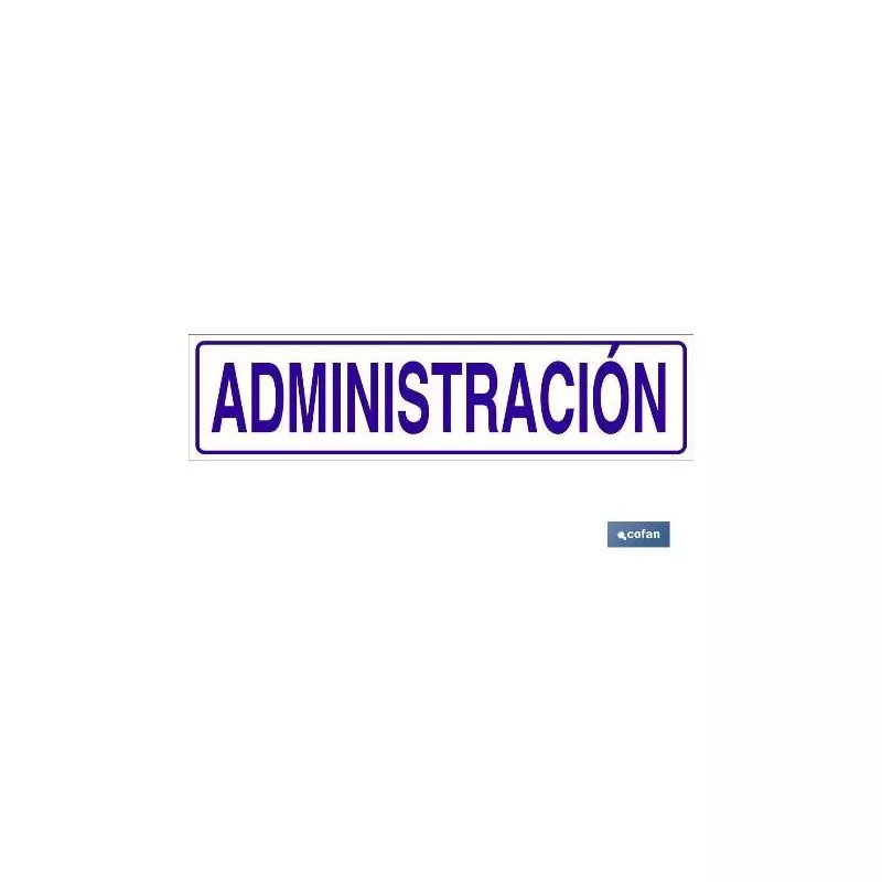 Señal informativa de glasspack adhesiva con texto administración. Tamaño a elegir.