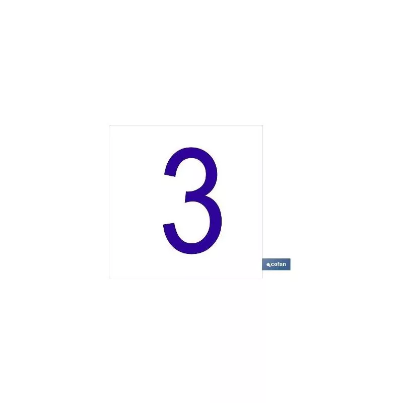 3 Número en glasspack adhesivo con el fondo blanco y carácter azul con medida en 62 x 62mm