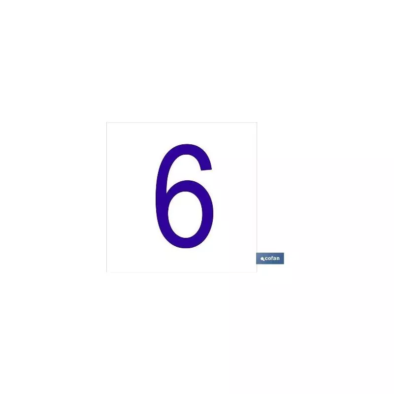 6 Número en glasspack adhesivo con el fondo blanco y carácter azul con medida en 62 x 62mm