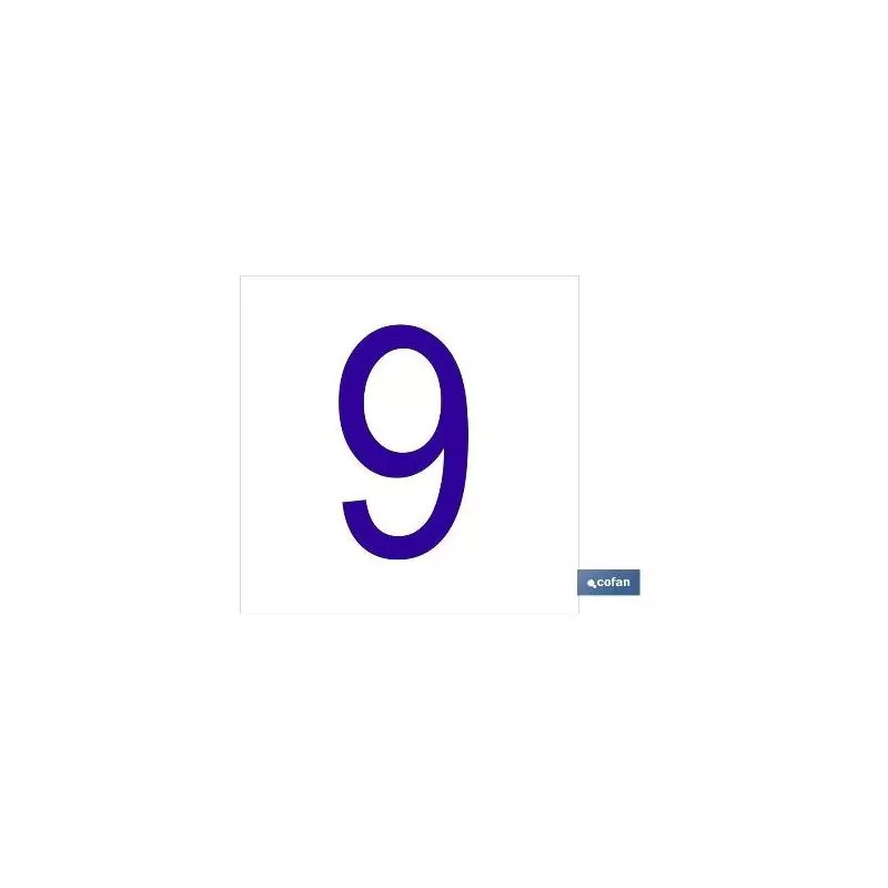 9 Número en glasspack adhesivo con el fondo blanco y carácter azul con medida en 62 x 62mm
