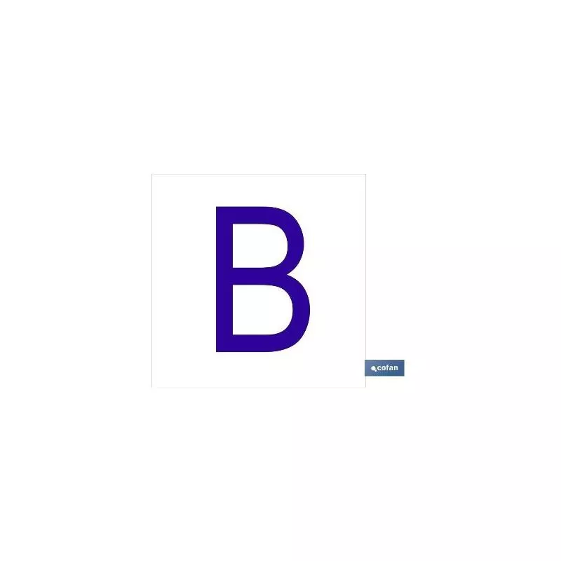 B Letra en glasspack adhesivo con el fondo blanco y carácter azul con medida en 62 x 62mm