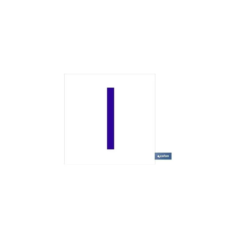 I Letra en glasspack adhesivo con el fondo blanco y carácter azul con medida en 62 x 62mm