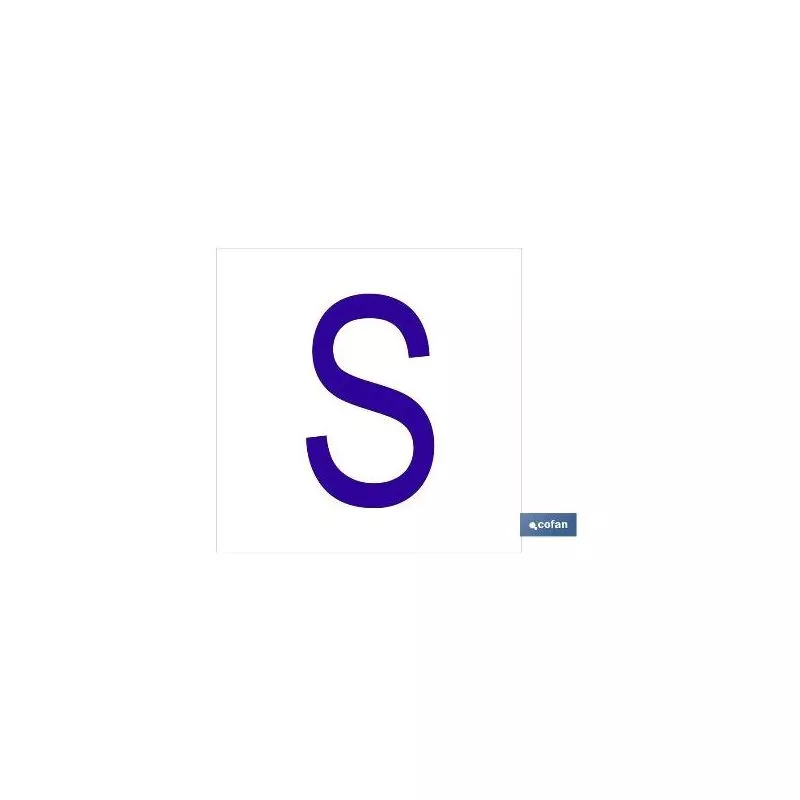 S Letra en glasspack adhesivo con el fondo blanco y carácter azul con medida en 62 x 62mm