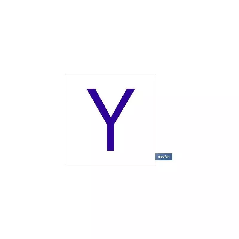 Y Letra en glasspack adhesivo con el fondo blanco y carácter azul con medida en 62 x 62mm