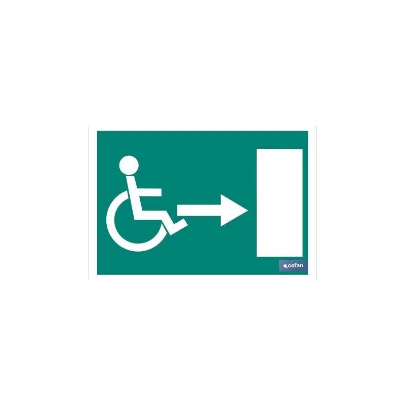 Señal salida minusválidos luminiscente con flecha a la derecha.