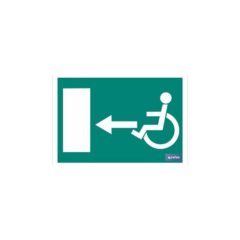 Señal salida minusválidos luminiscente con flecha a la izquierda.