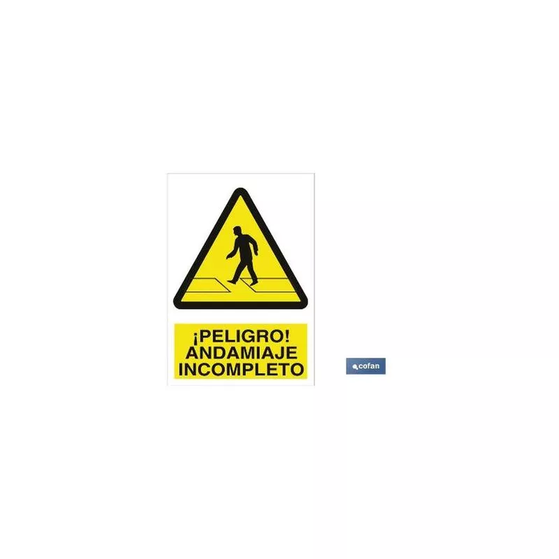 Señal de advertencia de peligro andamiaje incompleto. Tamaño y material a elegir.