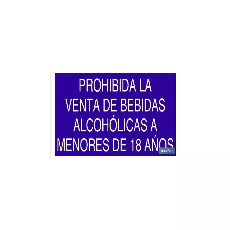 Señal informativa con texto de prohibida la venta de bebidas alcohólicas a menores de 18 años. Tamaño y material a elegir.