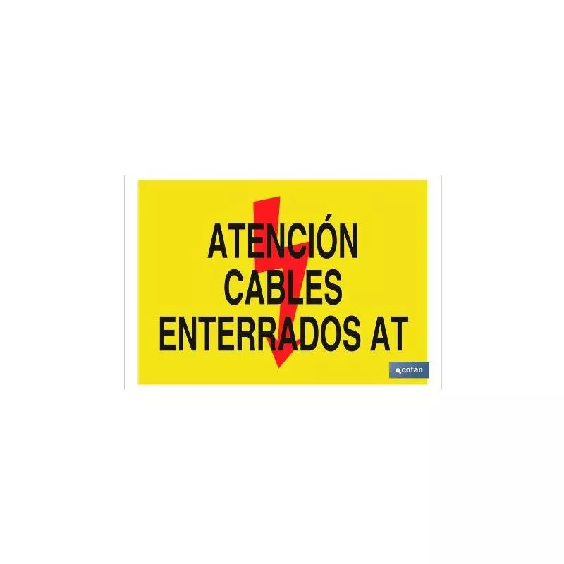 Señal de advertencia con imagen y texto atención cables enterrados AT.