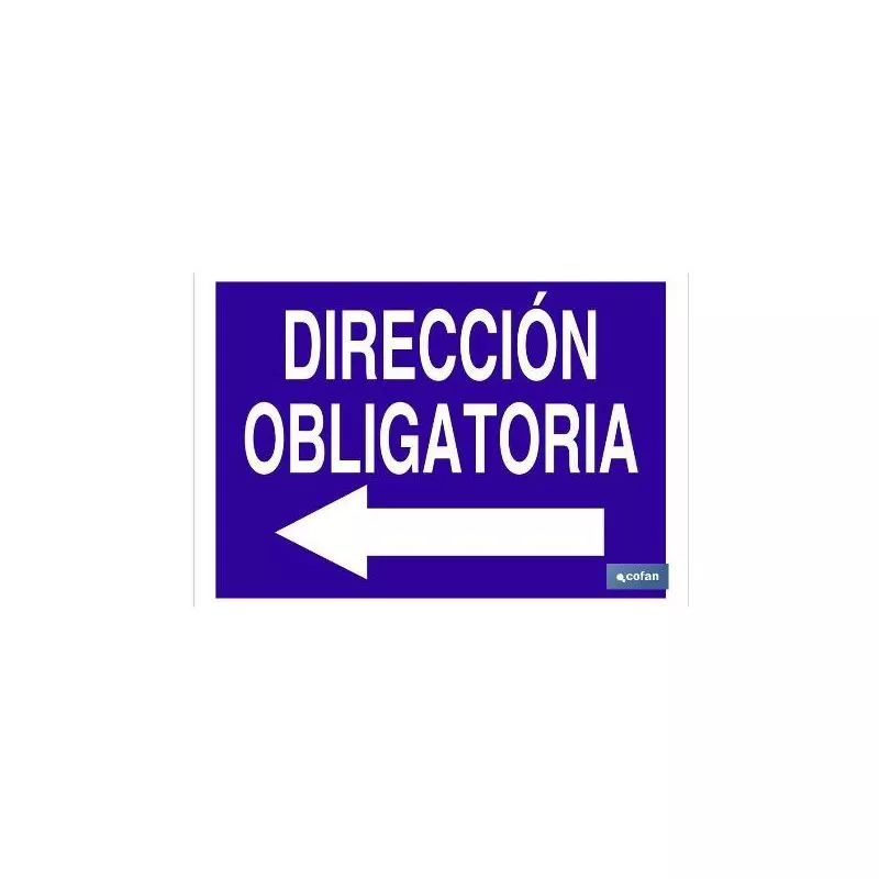 Señal de obligación con texto Dirección obligatoria.