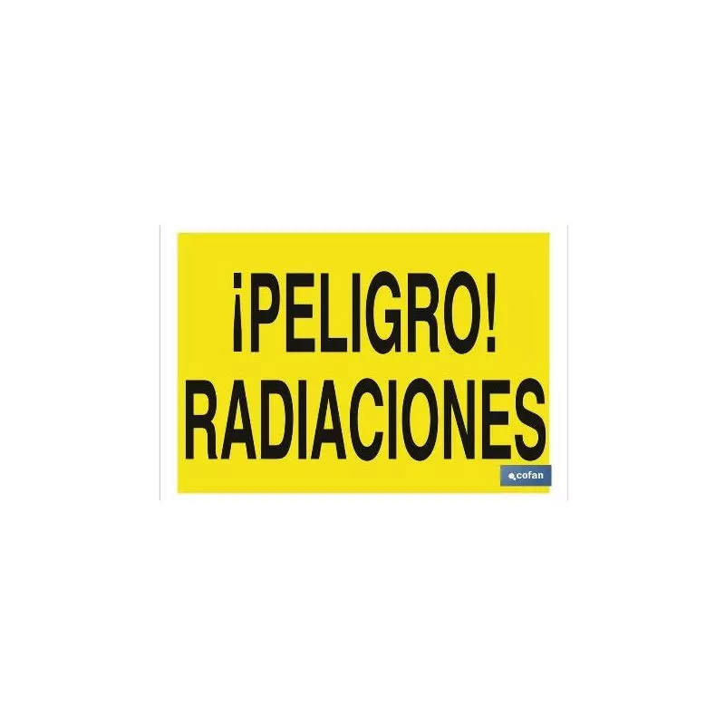 Señal de advertencia de peligro con texto radiaciones. Tamaño y material a elegir.