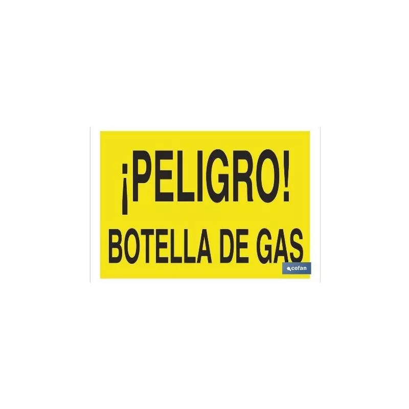 Señal de advertencia de peligro con texto botella de gas. Tamaño y material a elegir.