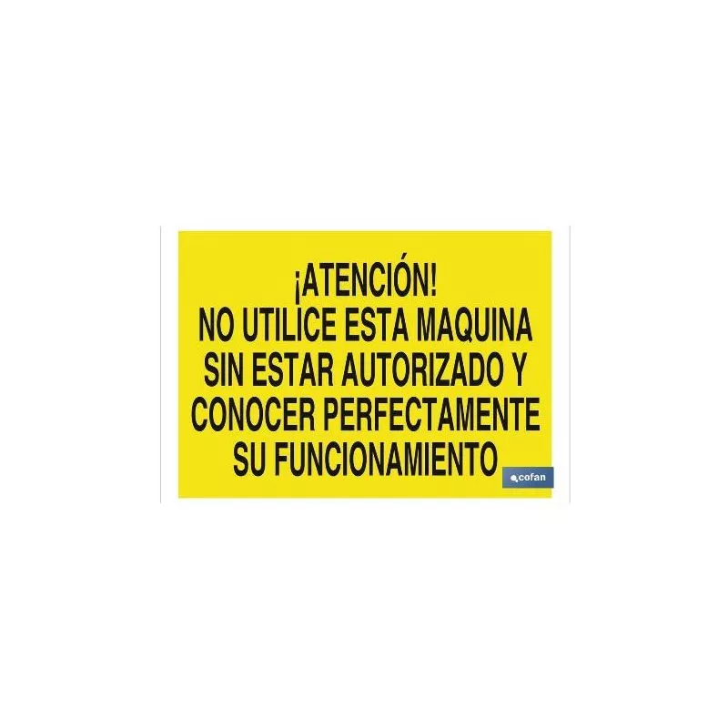 Señal de advertencia con texto atención no utilice esta máquina sin estar autorizado y conocer perfectamente su funcionamiento.