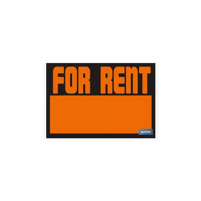 Señal informativa de poliestireno con texto for rent. Tamaño a elegir.