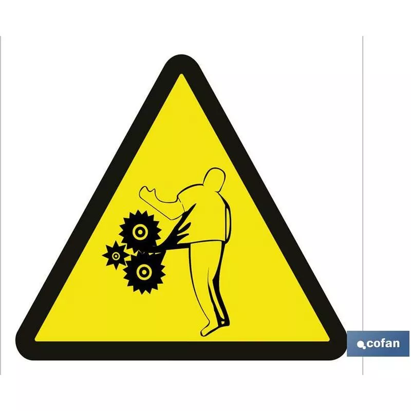 Señal de advertencia Peligro atrapamientos. Tamaño y material a elegir.