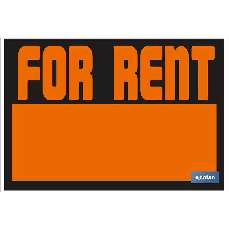 Señal informativa de poliestireno con texto for rent. Tamaño a elegir.