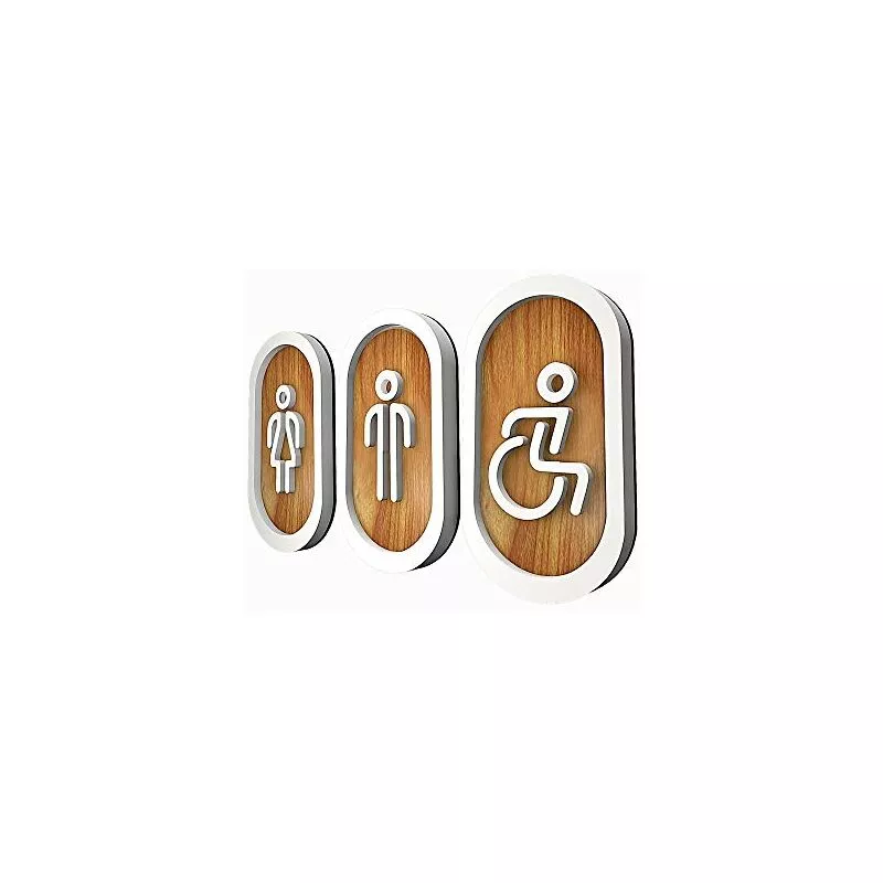 Compra Cartel para baño | Hombre + Mujer + Discapacitado| Madera | 100 x 180 mm al precio más barato.
