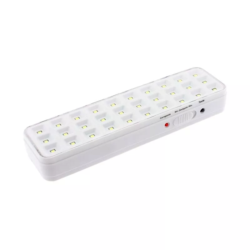 Luz de Emergencia Portátil. Dimensiones 205 × 65 × 28mm Consumo 3 W Alimentación 230 VAC ~ 50Hz Índice de protección IP20 Nº LEDs 30 Batería interna capacidad de carga 1200 mAh Autonomía 2 horas al máximo y 4 en LOW Voltaje 3'7V tecnología Li-ion
