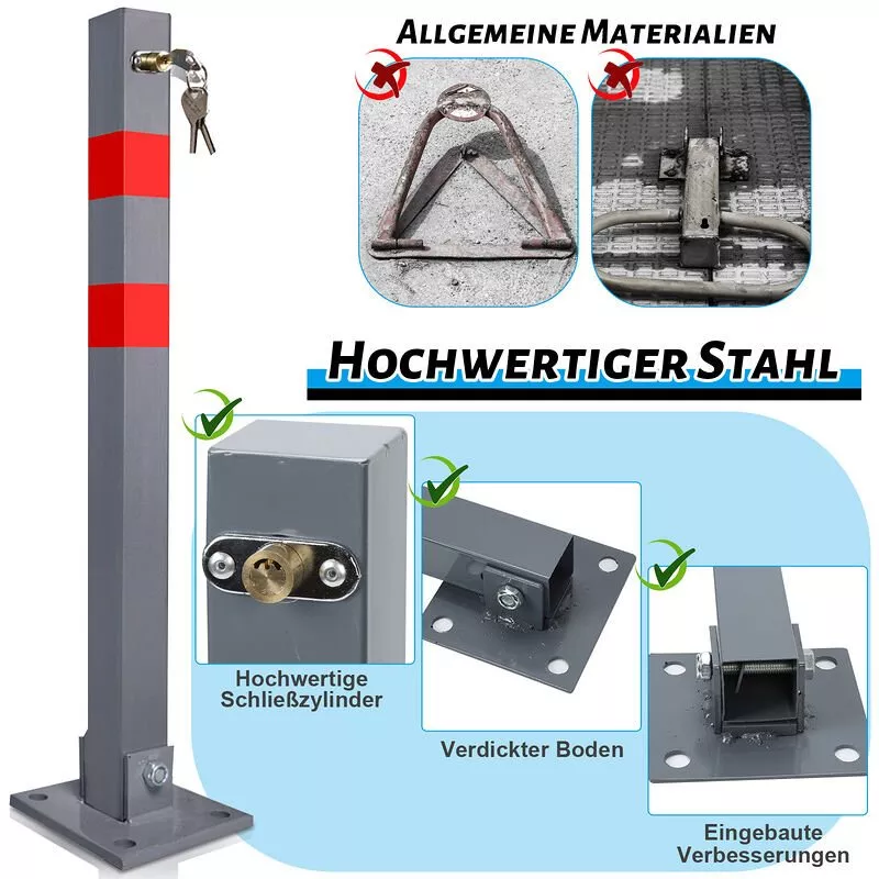 Hengda Postes de estacionamiento plegables de Angular 65 cm con tiras de advertencia rojas y 3 llaves, hechas de acero, postes de barrera de espacio
