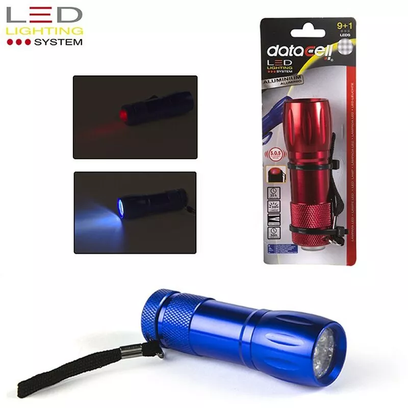 Linterna de Emergencia con luz de 10 leds. Medidas 65 x 35 x 165 mm Fabricada en aluminio, con modo de SOS en el que luce una luz intermintente roja. Incluye pilas 3 x AAA. Distancia de alcance de 16 m. 35 Horas de Uso aproximadamente. 50 Horas en el modo Flasch aproximadamente. Potencia de 30 lumens. 2 colores a elegir