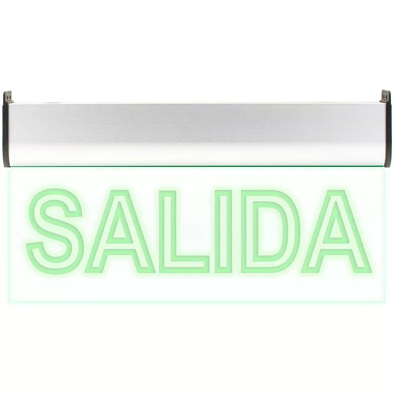 Alumbrado de señalización con tecnología led. Ofrece Luz de forma permanente iluminando la señalética en todo momento. Señalización de fácil instalación en techo, incluye cables de suspensión. Realizado en metacrilato de 3mm y cuerpo de aluminio que aloja la luminaria y transmite la luz por toda la superficie del metacrilato. Ofrece una comunicación visual que cumple la función de guiar, orientar u organizar a una persona o conjunto de personas en aquellos puntos del espacio que planteen dilemas de comportamiento, como por ejemplo centros comerciales, fábricas, polígonos industriales, parques tecnológicos, aeropuertos o cualquier espacio de pública concurrencia. LedBox da respuestas a las necesidades de los nuevos tiempos con la amplia gama de luminarias de emergencia equipadas con DIODOS LED, que sustituyen con ventaja a los modelos convencionales. - Led de 5W de alta potencia - Cuerpo construido en aluminio y señal en metacrilato. INCLUYE: