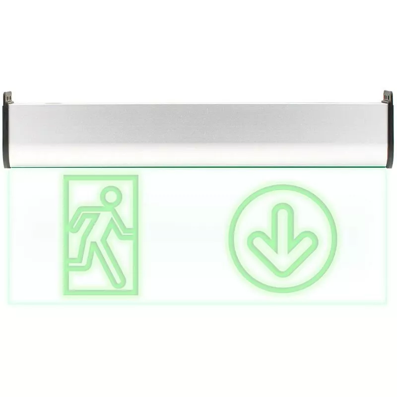 Alumbrado de señalización con tecnología led. Ofrece Luz de forma permanente iluminando la señalética en todo momento. Señalización de fácil instalación en techo, incluye cables de suspensión. Realizado en metacrilato de 3mm y cuerpo de aluminio que aloja la luminaria y transmite la luz por toda la superficie del metacrilato. Ofrece una comunicación visual que cumple la función de guiar, orientar u organizar a una persona o conjunto de personas en aquellos puntos del espacio que planteen dilemas de comportamiento, como por ejemplo centros comerciales, fábricas, polígonos industriales, parques tecnológicos, aeropuertos o cualquier espacio de pública concurrencia. LedBox da respuestas a las necesidades de los nuevos tiempos con la amplia gama de luminarias de emergencia equipadas con DIODOS LED, que sustituyen con ventaja a los modelos convencionales. - Led de 5W de alta potencia - Cuerpo construido en aluminio y señal en metacrilato. INCLUYE:
