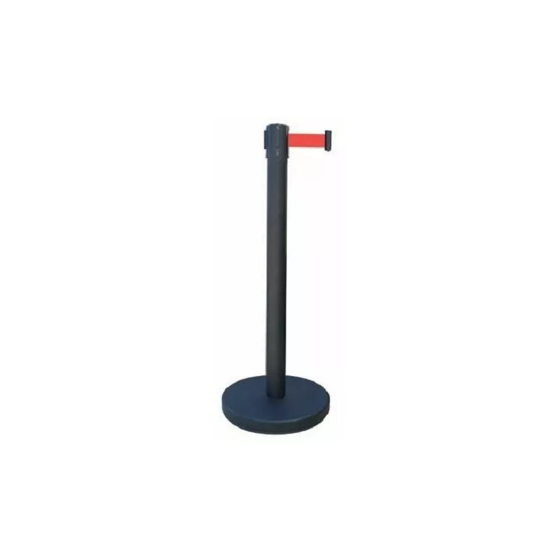 Poste negro con cinta METALWORKS RECO2BKRE Poste de cinta retráctil, de acero con cinta retráctil de 2 m de longitud. La base de Ø 320 mm, en la parte superior puede recibir hasta 3 cinturones en diferentes direcciones. CÓDIGO 758159511 MODELO RECO2BKRE COLOR POSTE Negro COLOR CINTA Rojo