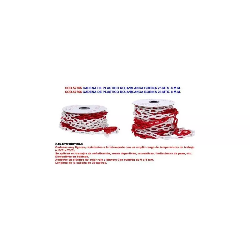 cadena de plastico roja-blanca bobina 25 mts. 8 m.m. - Mibricotienda