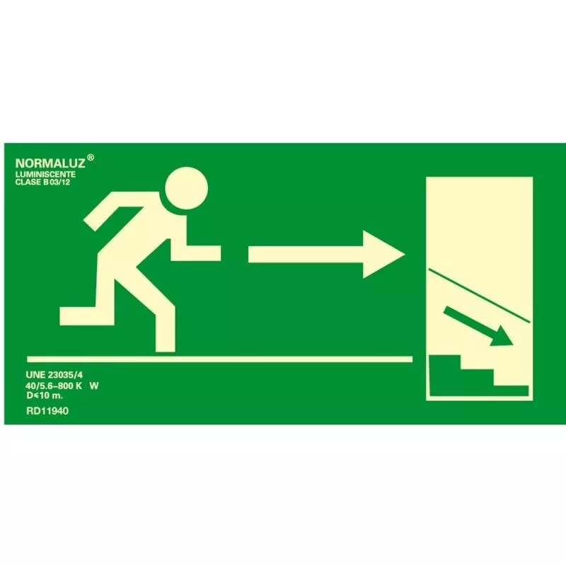 Cartel evacuación escalera abajo derecha pvc 0,7mm clase b 32x16cm b11140 normaluz 8422838032985 09017 normaluz