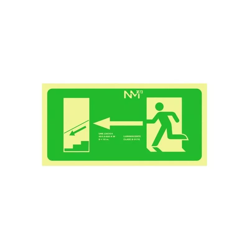 Señal 320X160Mm Pvc Lumi Evacuacion Bajada Izquierd Rd11141